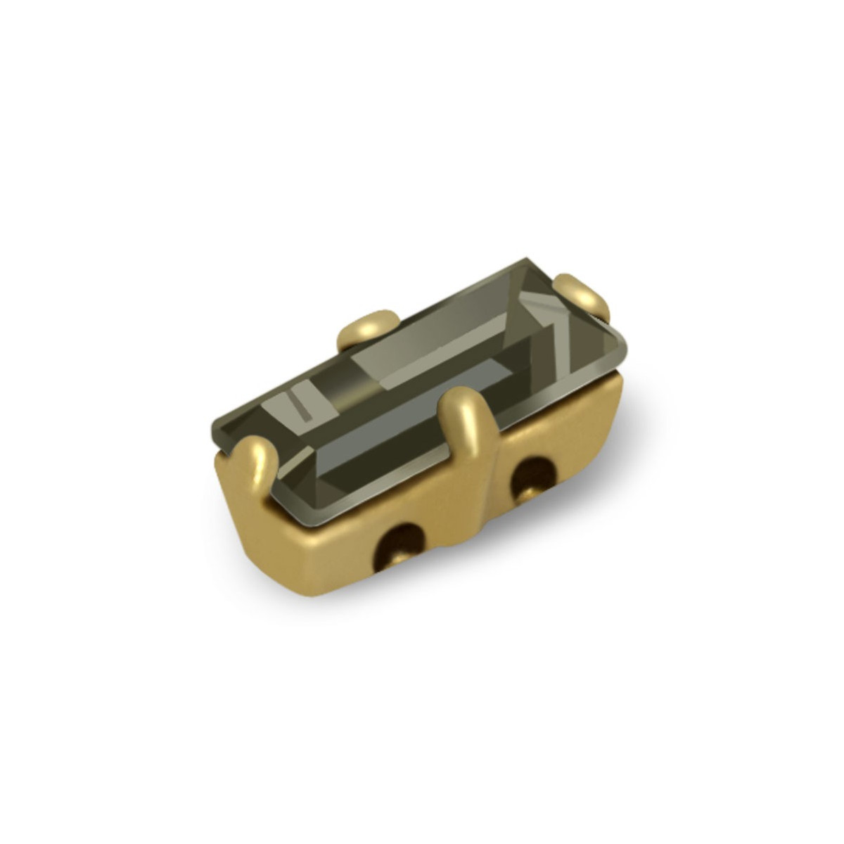 PRECIOSA Crystal baguettes sewing completely embedded in genuine crystal bezel mounted rectangular metallic cezch gold color. At the bottom there are holes, sewing on any material to make high fashion garments at home a figment of your imagination.