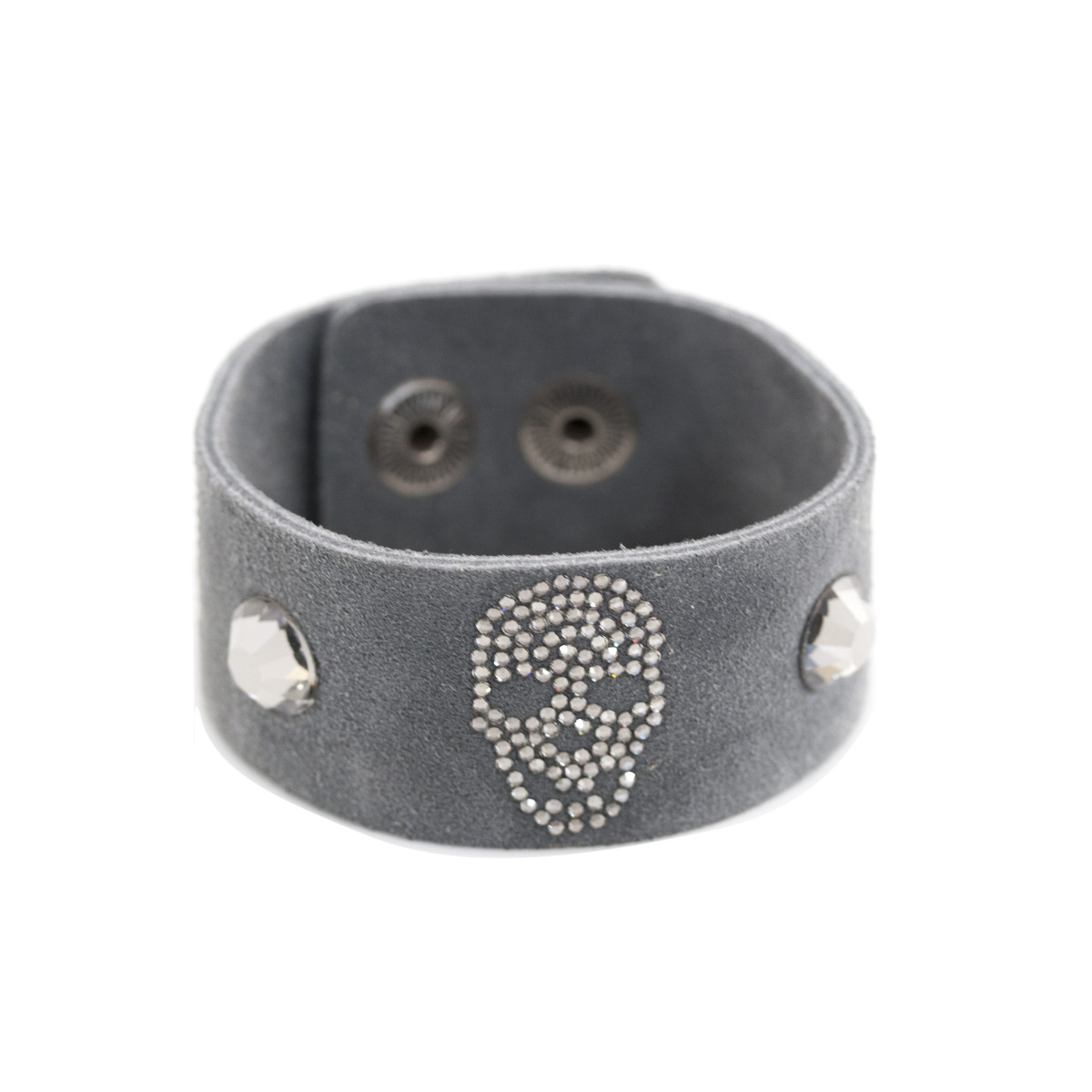 Bracciale in pelle scamosciata grigia, nella parte superiore sono applicati purissimi cristalli Preciosa che conferiscono al bracciale look glamour.