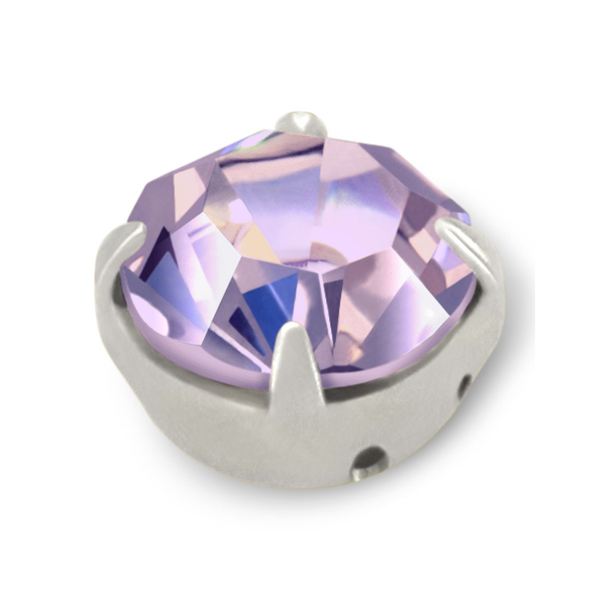 Strass MAXIMA incastonato da cucire completamente in cristallo PRECIOSA genuine cezch crystal forma tonda montato su castone metallico colore argento. Nella parte inferiore sono presenti fori, da cucire su qualsiasi materiale per realizzare a casa vostra capi di alta moda frutto della vostra fantasia.