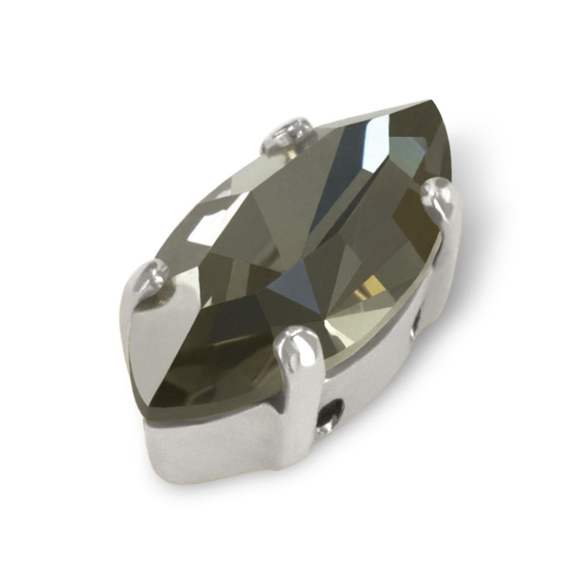 Navetta incastonata da cucire completamente in cristallo PRECIOSA genuine cezch crystal forma navetta montato su castone metallico colore argento. Nella parte inferiore sono presenti fori, da cucire su qualsiasi materiale per realizzare a casa vostra capi di alta moda frutto della vostra fantasia.
